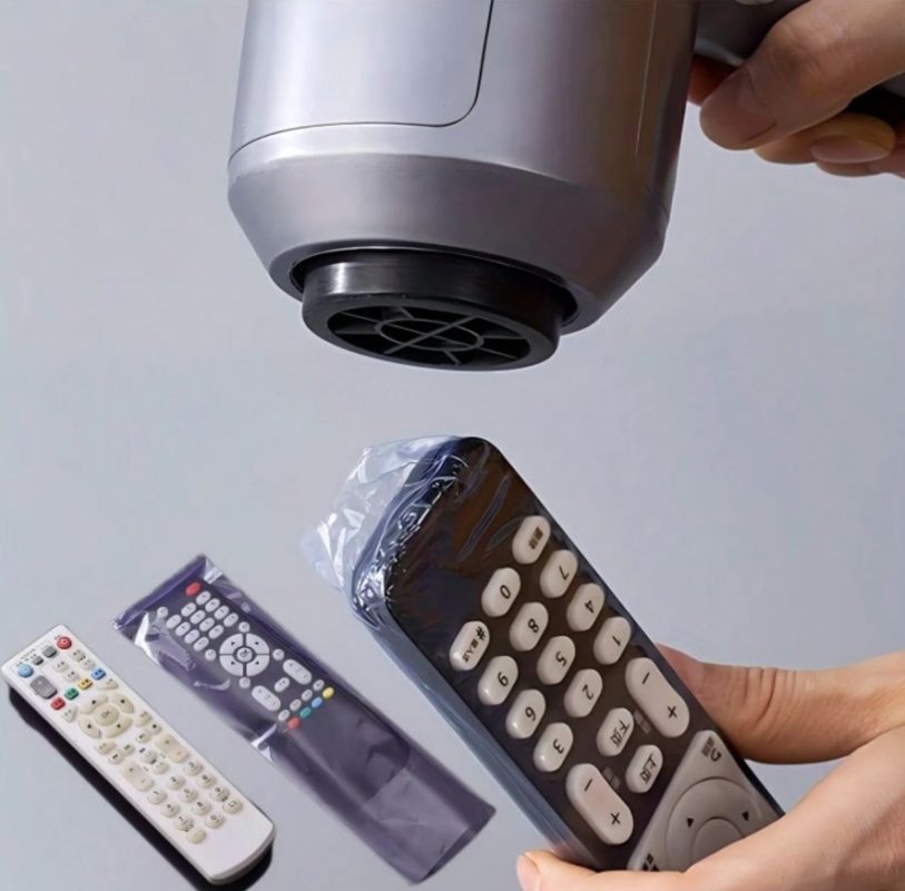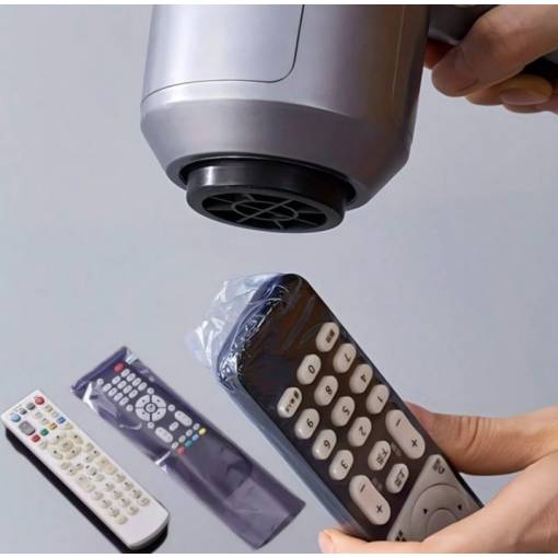 - Akonáhle sa fólia začne ľahko zmršťovať, jemne ju prstami pritlačte k ovládaču, aby kopírovala jeho tvar a tlačidlá.